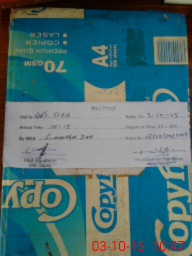| Monitoring Date: 03-10-2015 | Start Time: 03-10-2015 10:21 AM | End Time: 03-10-2015 10:48 AM | Name of MEA: Ch**** Di**** | |