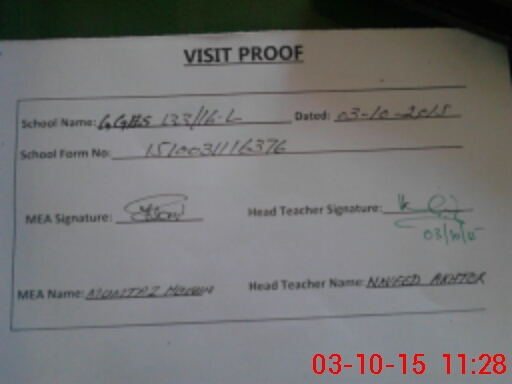 | Attendance Register | Head Teacher | MEA with School | Visit Proof |