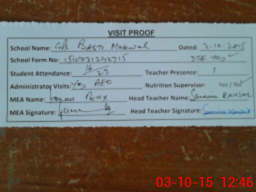 | Attendance Register | Head Teacher | MEA with School | Visit Proof |