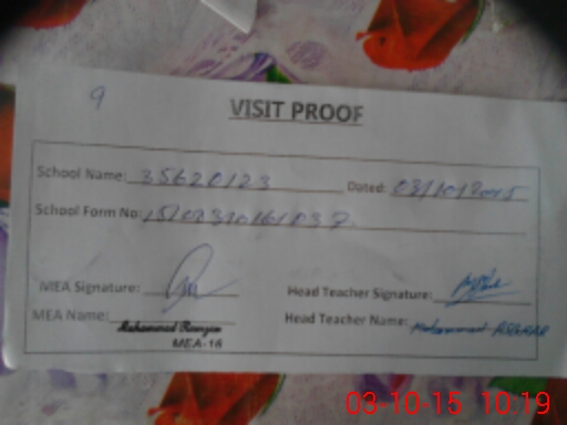 | Attendance Register | Head Teacher | MEA with School | Visit Proof |
