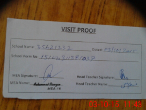 | Attendance Register | Head Teacher | MEA with School | Visit Proof |