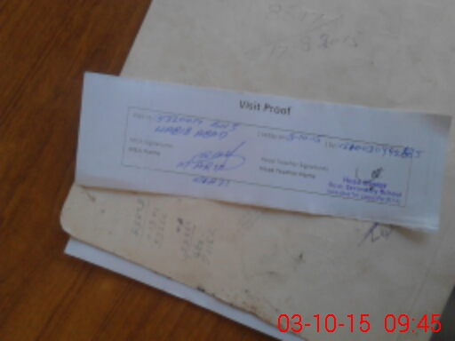 | School Visited by School Health & Nutrition Supervisor (No. of Visits) | 1 | Name1: | M Tahir | Name2: | |