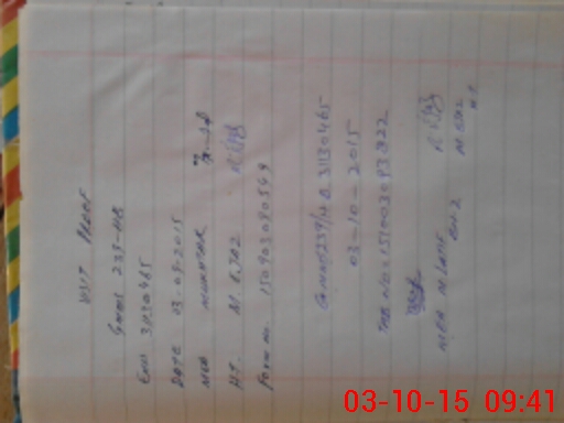 | Monitoring Date: 03-10-2015 | Start Time: 03-10-2015 09:20 AM | End Time: 03-10-2015 09:45 AM | Name of MEA: Mo**** La**** BN**** 02 | |