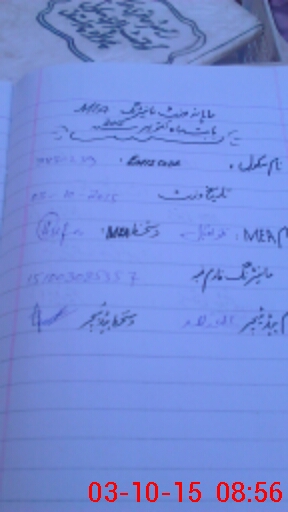 | Monitoring Date: 03-10-2015 | Start Time: 03-10-2015 08:15 AM | End Time: 03-10-2015 08:58 AM | Name of MEA: Za**** Iq**** BN**** | |