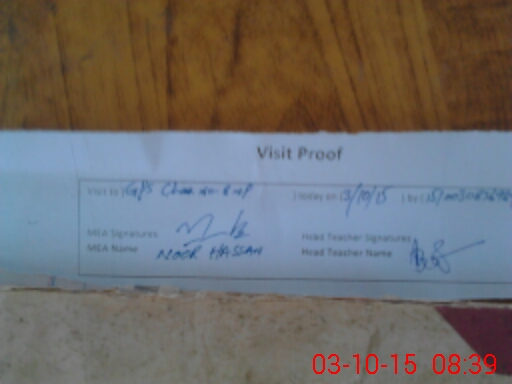 | Attendance Register | Head Teacher | MEA with School | Visit Proof |