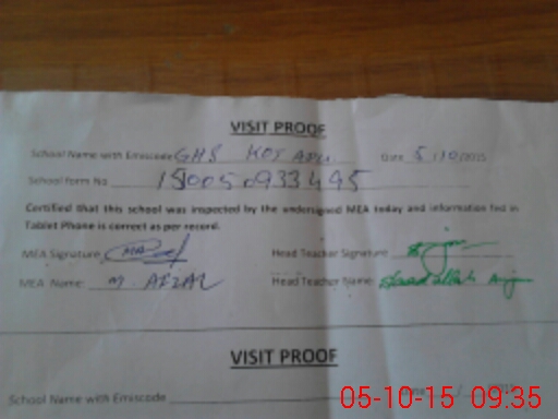 | Certified that this School was Inspected by the Undersigned MEA/DMO Today and the Information Stated Above is as Per Record. | |||||