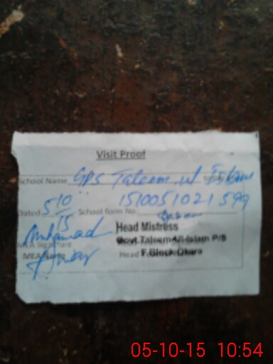 | EMIS Code: 39320432 | Name of School: GPS TALEEM-UL-ISLAM | |||