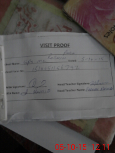 | Attendance Register | Head Teacher | MEA with School | Visit Proof |