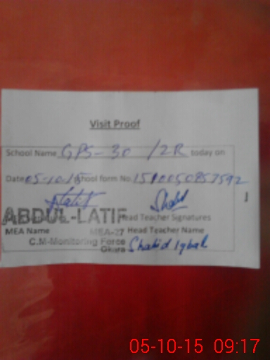 | EMIS Code: 39320429 | Name of School: GPS CHAK NO. 30/2-R | |||