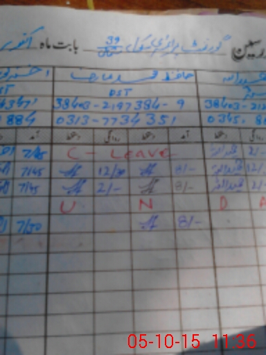 | CNIC | Full Name | Designation | R/C | Absence During Last Calender Month |