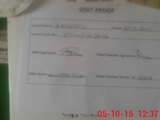 | Attendance Register | Head Teacher | MEA with School | Visit Proof |