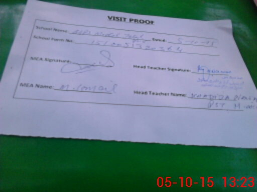 | Attendance Register | Head Teacher | MEA with School | Visit Proof |