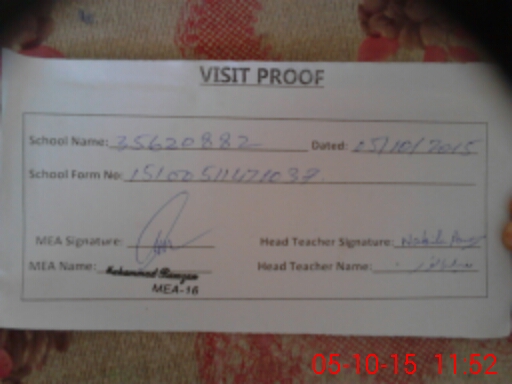 | Attendance Register | Head Teacher | MEA with School | Visit Proof |