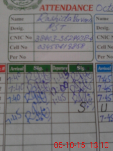 | Name: RA**** PA**** Designation: (School Headmaster's/Headmistress's) PST Phone/Cell Number: 03**** |