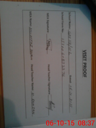 | Attendance Register | Head Teacher | MEA with School | Visit Proof |