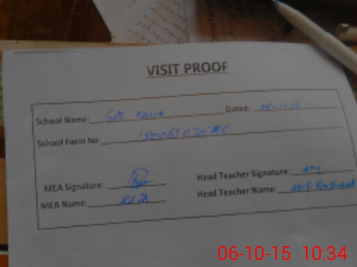 | Attendance Register | Head Teacher | MEA with School | Visit Proof |