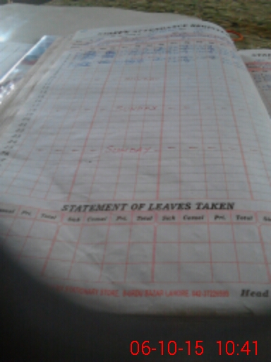 | CNIC | Full Name | Designation | R/C | Absence During Last Calender Month |