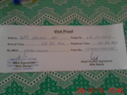 | Attendance Register | Head Teacher | MEA with School | Visit Proof |