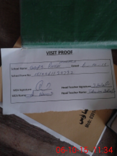 | Attendance Register | Head Teacher | MEA with School | Visit Proof |