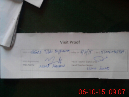 | Attendance Register | Head Teacher | MEA with School | Visit Proof |
