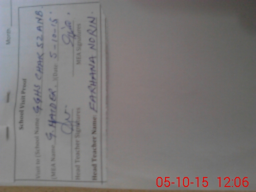 | EMIS Code: 38420693 | Name of School: GGHS CHAK NO.52 A-NB LUDAY WALA | |||