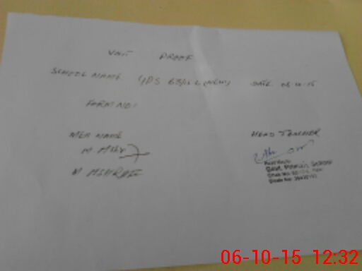| Attendance Register | Head Teacher | MEA with School | Visit Proof |