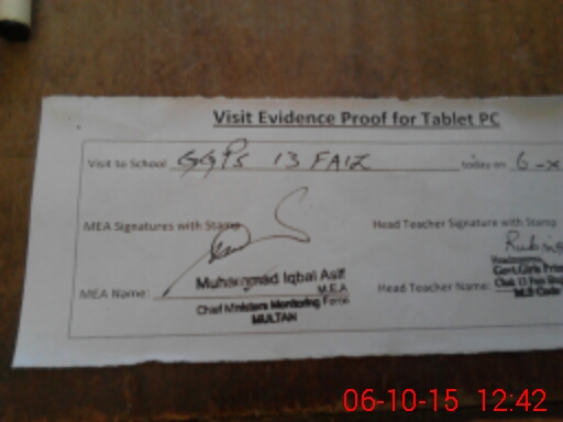 | Certified that this School was Inspected by the Undersigned MEA/DMO Today and the Information Stated Above is as Per Record. | |||||