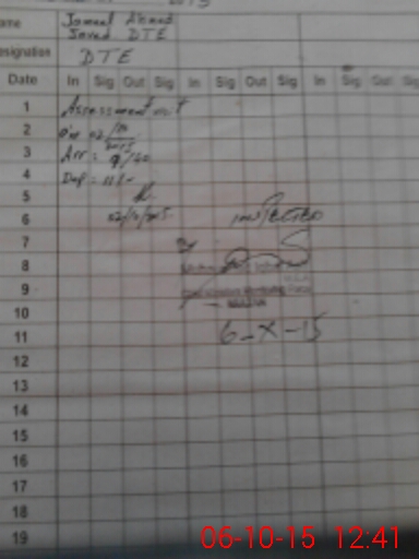 | Monitoring Date: 06-10-2015 | Start Time: 06-10-2015 12:20 PM | End Time: 06-10-2015 12:45 PM | Name of MEA: MU**** IQ**** AS**** | |