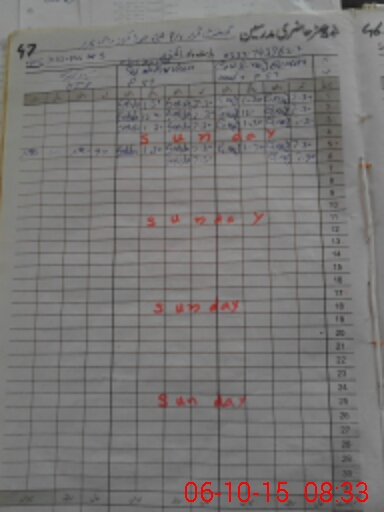 | CNIC | Full Name | Designation | R/C | Absence During Last Calender Month |