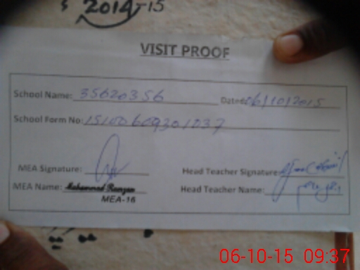 | Attendance Register | Head Teacher | MEA with School | Visit Proof |