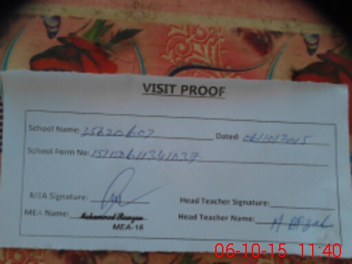 | Attendance Register | Head Teacher | MEA with School | Visit Proof |