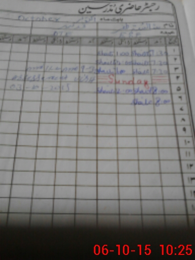 | Monitoring Date: 06-10-2015 | Start Time: 06-10-2015 10:06 AM | End Time: 06-10-2015 10:28 AM | Name of MEA: Al**** Hu**** BN**** | |