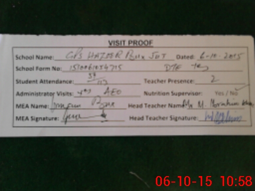 | Attendance Register | Head Teacher | MEA with School | Visit Proof |