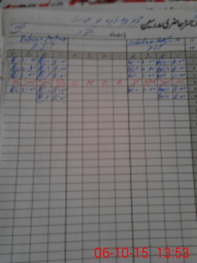 | CNIC | Full Name | Designation | R/C | Absence During Last Calender Month |