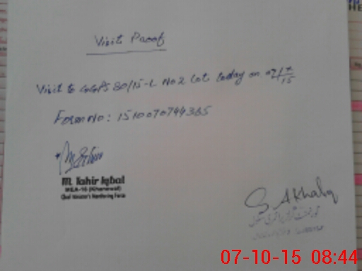 | Monitoring Date: 07-10-2015 | Start Time: 07-10-2015 07:43 AM | End Time: 07-10-2015 08:56 AM | Name of MEA: M.Ta**** Iq**** (S**** | |