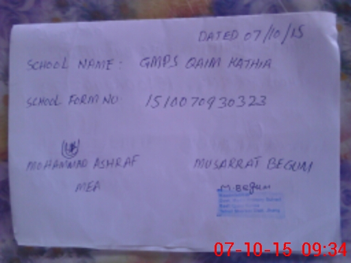 | EMIS Code: 33230282 | Name of School: GPS QAIM KATHIA | |||