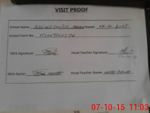| Attendance Register | Head Teacher | MEA with School | Visit Proof |