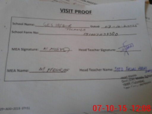 | Attendance Register | Head Teacher | MEA with School | Visit Proof |