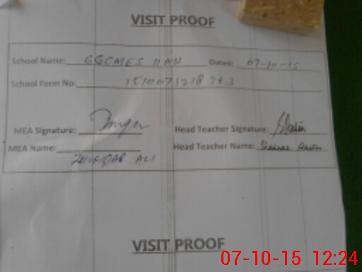 | Attendance Register | Head Teacher | MEA with School | Visit Proof |