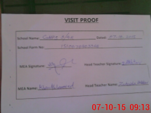 | Attendance Register | Head Teacher | MEA with School | Visit Proof |