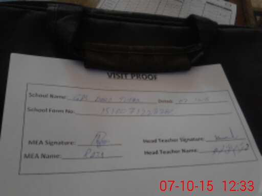 | Attendance Register | Head Teacher | MEA with School | Visit Proof |