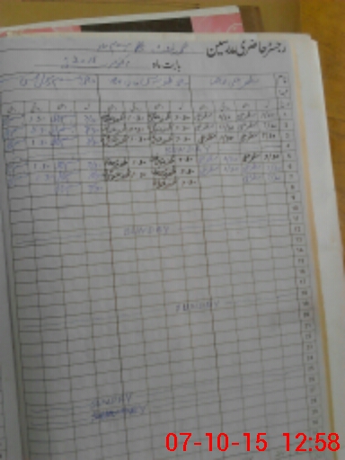 | CNIC | Full Name | Designation | R/C | Absence During Last Calender Month |