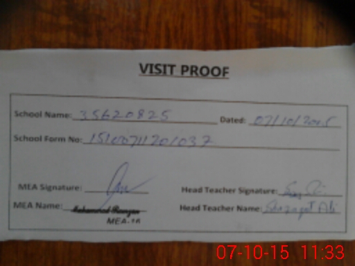| Attendance Register | Head Teacher | MEA with School | Visit Proof |