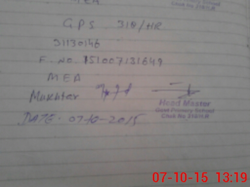 | EMIS Code: 31130146 | Name of School: GPS CHAK 318/HR | |||