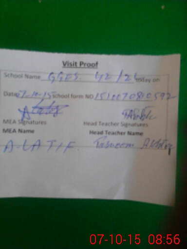 | Attendance Register | Head Teacher | MEA with School | Visit Proof |