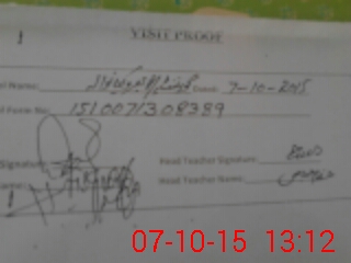 | Name: GH**** AB**** Designation: (School Headmaster's/Headmistress's) PST/PTC/JV Phone/Cell Number: 03**** |