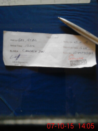 | Monitoring Date: 07-10-2015 | Start Time: 07-10-2015 01:02 PM | End Time: 07-10-2015 02:07 PM | Name of MEA: Ch**** Di**** | |