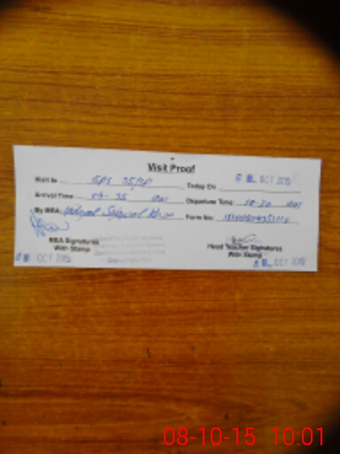 | Monitoring Date: 08-10-2015 | Start Time: 08-10-2015 09:35 AM | End Time: 08-10-2015 10:02 AM | Name of MEA: Hi**** Al**** Kh**** (R**** | |
