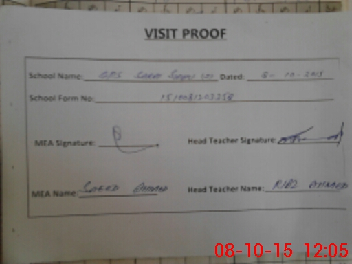| Attendance Register | Head Teacher | MEA with School | Visit Proof |