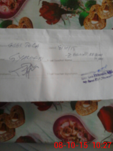 | Name: ZE**** BE**** Designation: (School Headmaster's/Headmistress's) HEADMASTER Phone/Cell Number: 03**** |